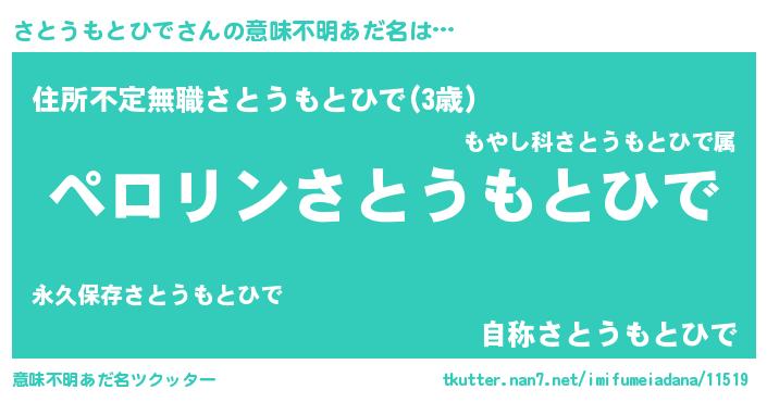 | 恥ずかしいあだ名 | 『プリティーさとうもとひで』『さとちん』 |