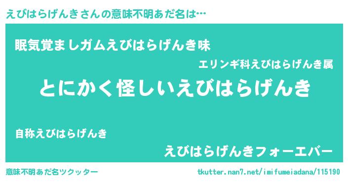 | 胡散臭い通販商品みたいなあだ名 | 『信頼と実績のペンダント…その名も「えびはらげんき」』 |