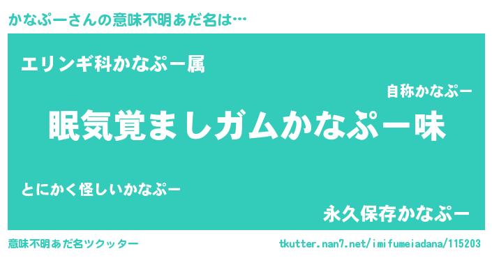 | 男性向けラノベタイトル風あだ名 | 『ノーゲーム・ノーカナプー』 |