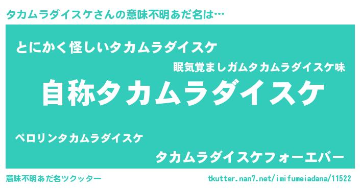 | 女子向けラノベタイトル風あだ名 | 『タカムラダイスケなんてお断りですっ。』 |