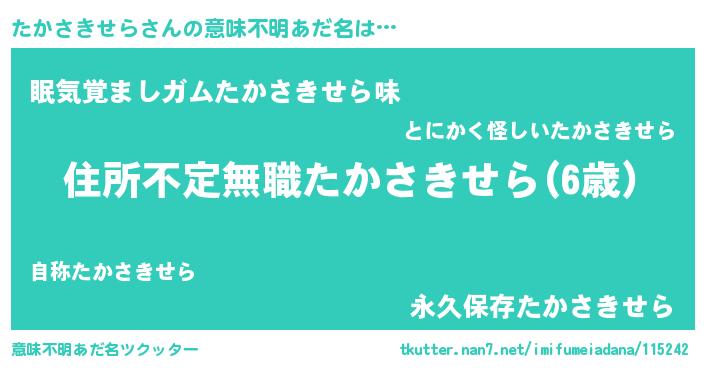 | ヘコむあだ名 | 『たかさきせら(笑)』『たかぷりん』 |