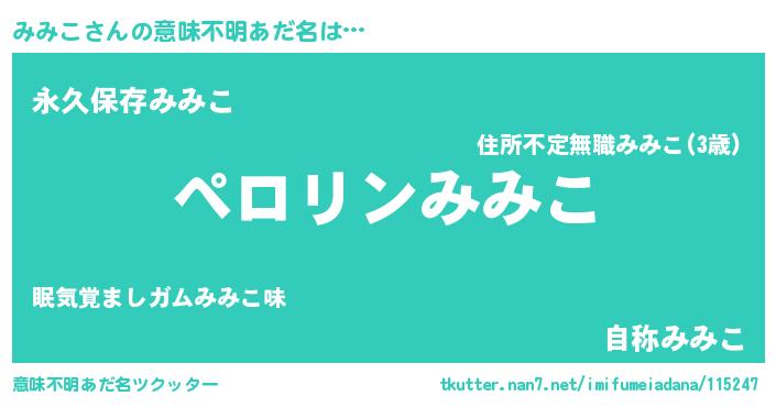 | 胡散臭い通販商品みたいなあだ名 | 『必ず成功する霊験あらたかなお札…その名も「みみこ」』 |