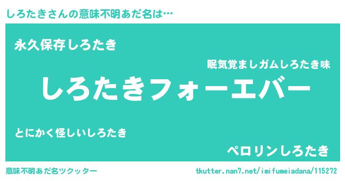 | ファンタジー風あだ名 | 『エターナルシロタキー』『シロフェル』 |