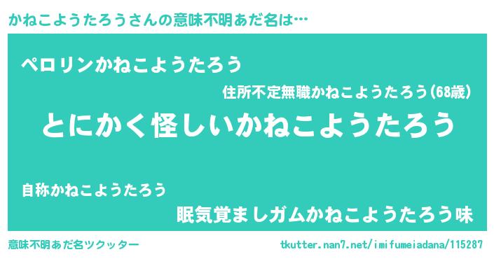 | 料理風あだ名 | 『かねこようたろうの豆乳スープ』 |