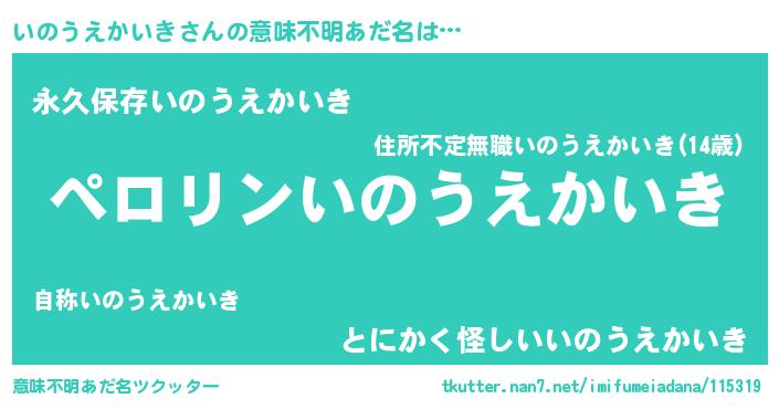 | ヘコむあだ名 | 『いのにゅー』『いのうえかいき(震え声)』 |