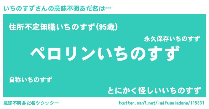 | 恥ずかしいあだ名 | 『プリティーいちのすず』『イチリンリン』 |
