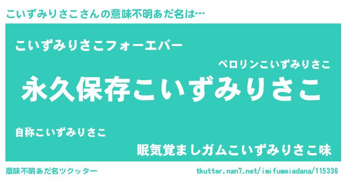 | 胡散臭い通販商品みたいなあだ名 | 『来世でも幸せになれる健康食品…その名も「こいずみりさこ」』 |