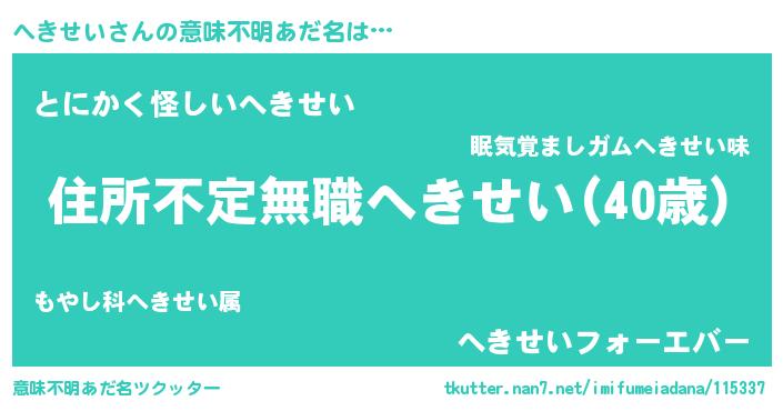| ヘコむあだ名 | 『へき太郎』『なまこ酢』『へきにー』 |