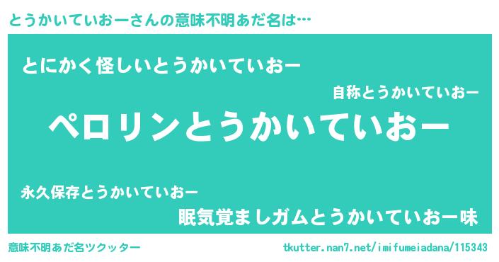 | 胡散臭い通販商品みたいなあだ名 | 『モテモテ間違いなし霊験あらたかなお札…その名も「とうかいていおー」』 |