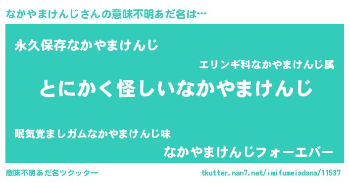 | 胡散臭い通販商品みたいなあだ名 | 『信頼と実績のサプリメント…その名も「なかやまけんじ」』 |