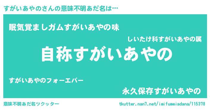 | 女子向けラノベタイトル風あだ名 | 『すがいあやのなんてお断りですっ。』 |