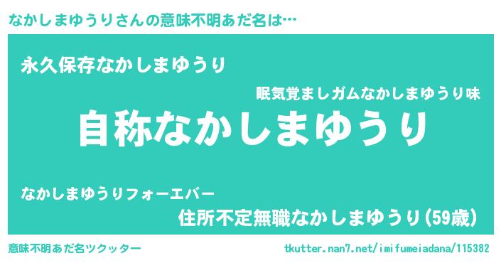 | 男性向けラノベタイトル風あだ名 | 『Re:なかしまゆうりから始める異世界生活』 |
