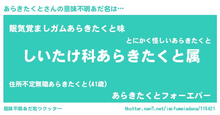 | 胡散臭い通販商品みたいなあだ名 | 『100人中100人が認めたマグネット磁石…その名も「あらきたくと」』 |