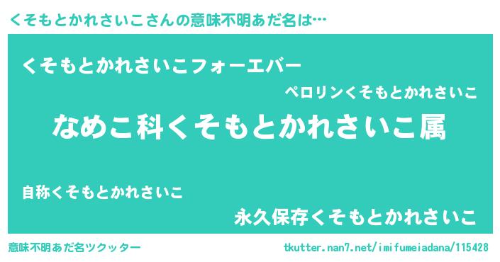 | ヘコむあだ名 | 『なまこ酢』『くそもとかれさいこ(笑)』 |