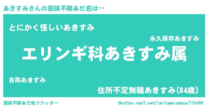 | ポケモン風あだ名 | 『アキキング』『ヒアキスミ』 |