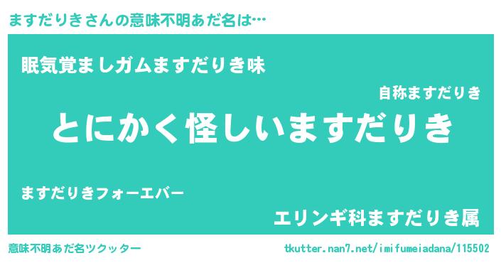 | 男性向けラノベタイトル風あだ名 | 『ますだりきに滅ぼされるだけの簡単なお仕事です』 |