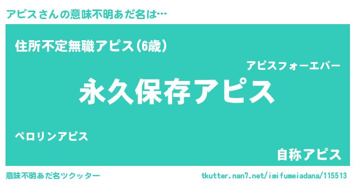 | ヘコむあだ名 | 『アピス(小並感)』『レバニラ』 |