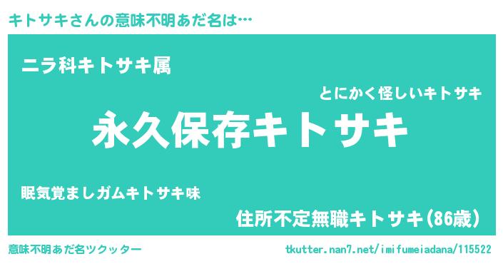 | 男性向けラノベタイトル風あだ名 | 『キトサキという概念が存在しない退屈な世界 』 |