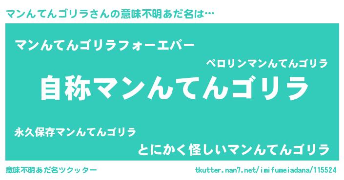 | 男性向けラノベタイトル風あだ名 | 『うちのマンんてんゴリラが世界を掌握している!』 |