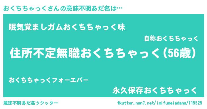 | ヘコむあだ名 | 『おくちちゃっく(爆)』『酢こんぶ』 |
