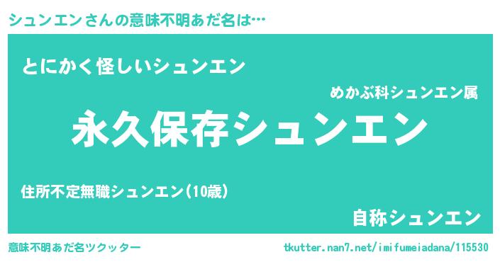 | ヘコむあだ名 | 『シュンエン(爆)』『シュ太郎』 |