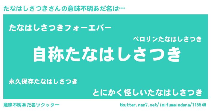 | 肩書あだ名 | 『たなはしさつき閣下』 |