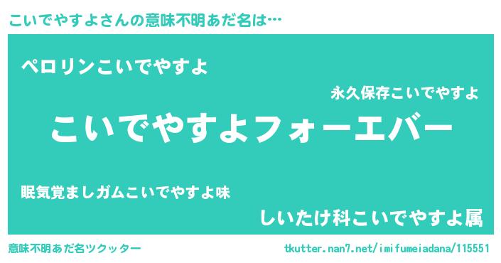 | ファンタジー風あだ名 | 『エターナルコイデヤスヨー』 |