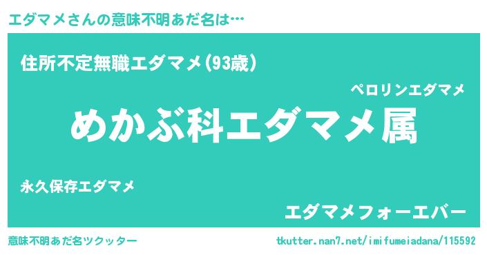| 伝説のあだ名 | 『秘められし陰陽師エダマメ』 |