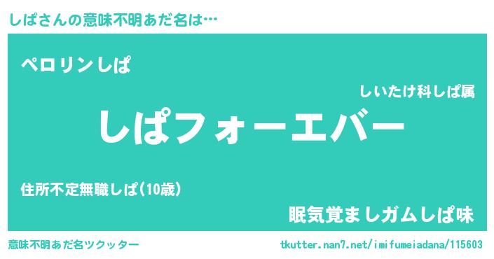 | 女子向けラノベタイトル風あだ名 | 『しぱの雑貨屋さん』『死神しぱの再婚』 |