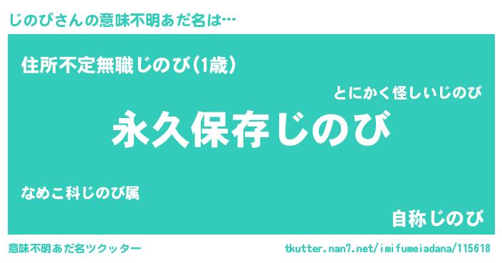| 男性向けラノベタイトル風あだ名 | 『じのびという概念が存在しない退屈な世界 』 |