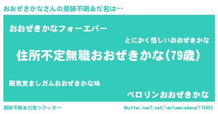 | 女子向けラノベタイトル風あだ名 | 『乙女ゲームの破滅フラグしかない悪役おおぜきかなに転生してしまった…』 |