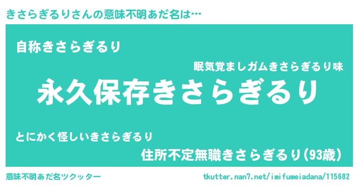 | ヘコむあだ名 | 『きさらぎるり(笑)』『きさを』 |