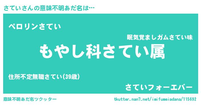 | 男性向けラノベタイトル風あだ名 | 『さていに滅ぼされるだけの簡単なお仕事です』 |