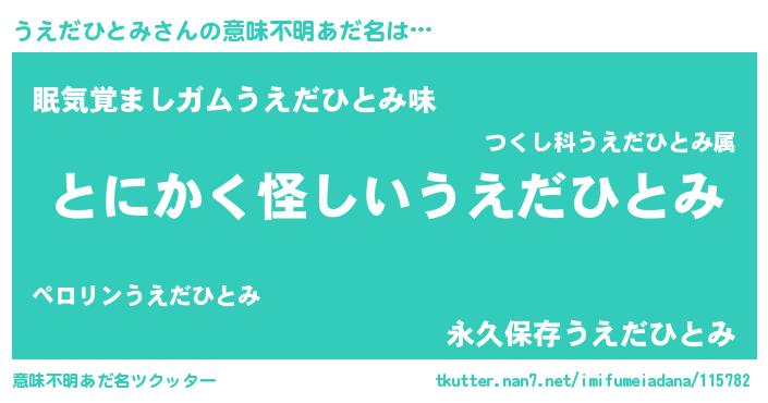 | 男性向けラノベタイトル風あだ名 | 『うえだひとみの嫁は女の子じゃないと思った?』 |