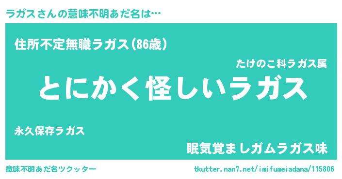 | ヘコむあだ名 | 『ラガっぺ』『ラガス(震え声)』 |