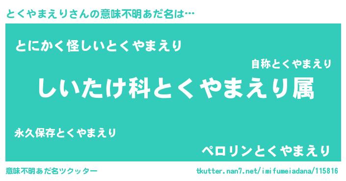 | 胡散臭い通販商品みたいなあだ名 | 『信頼と実績のサプリメント…その名も「とくやまえり」』 |