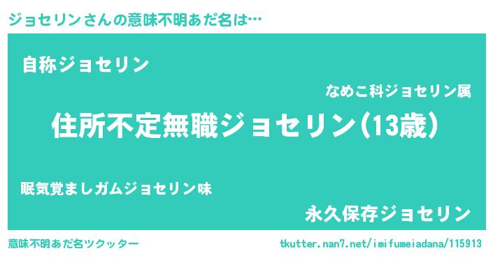 | ヘコむあだ名 | 『ジョセリン(笑)』『ジョにゅー』 |