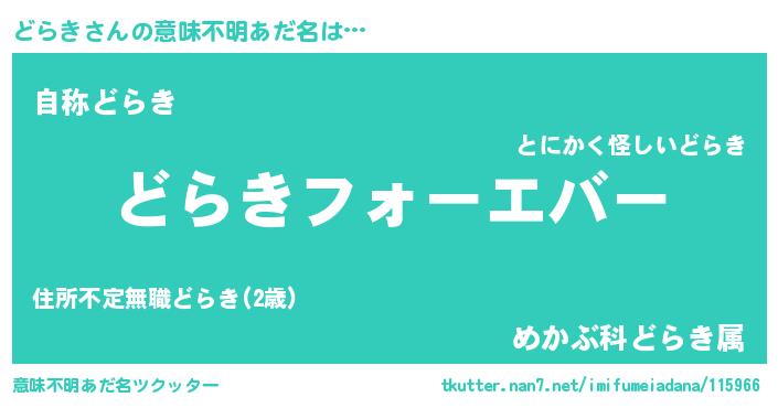 | 女子向けラノベタイトル風あだ名 | 『どらきの婚約者』『どらきアンティーク』 |