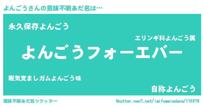| ファンタジー風あだ名 | 『エターナルヨンゴウー』『ゼヨントゥ』 |