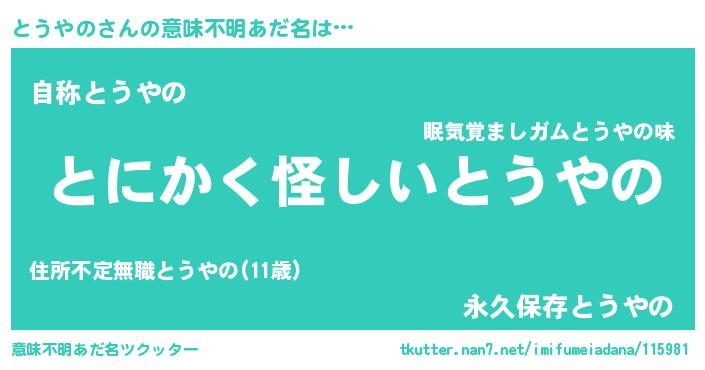 | ヘコむあだ名 | 『とう太郎』『とうやの(笑)』 |