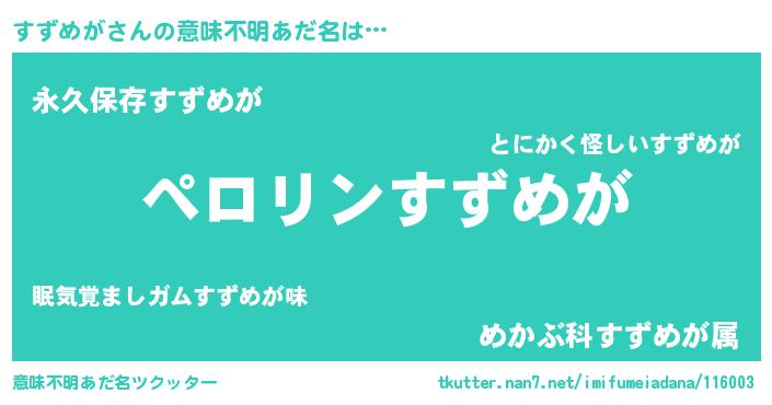 | 胡散臭い通販商品みたいなあだ名 | 『必ず成功する霊験あらたかなお札…その名も「すずめが」』 |