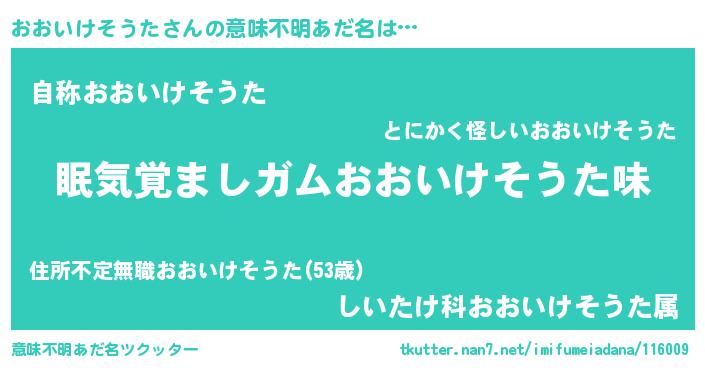 | 欧米人風あだ名 | 『アンジェラ・おおいけそうた』 |