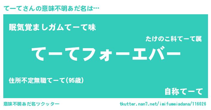 | ヒーロー風カッコイイあだ名 | 『ウルトラてーてマン』『最強戦士テーテ』 |