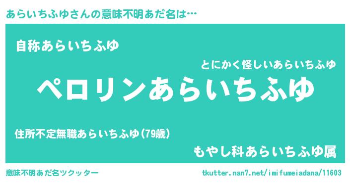 | 胡散臭い通販商品みたいなあだ名 | 『必ず成功する霊験あらたかなお札…その名も「あらいちふゆ」』 |