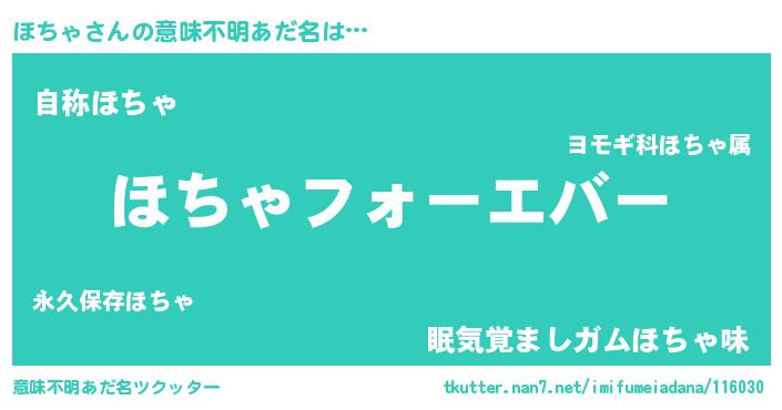 | ファンタジー風あだ名 | 『エターナルホチャー』『ゼホチトゥ』 |