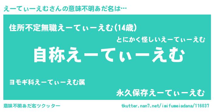 | 男性向けラノベタイトル風あだ名 | 『Re:えーてぃーえむから始める異世界生活』 |