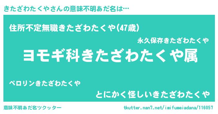 | 男性向けラノベタイトル風あだ名 | 『うちのきたざわたくやが世界を掌握している!』 |