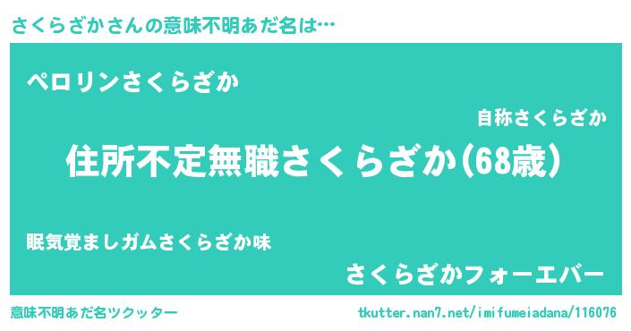 | 胡散臭い通販商品みたいなあだ名 | 『あなたにだけ特別に提供する限定10本のレアな日本酒…その名も「さくらざか」』 |
