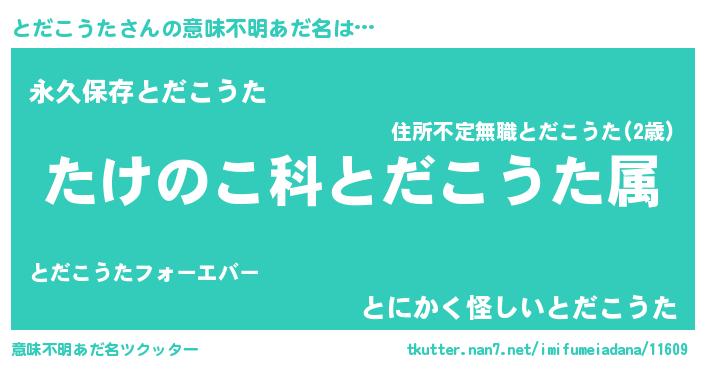 | 男性向けラノベタイトル風あだ名 | 『転生したらとだこうただった件』 |