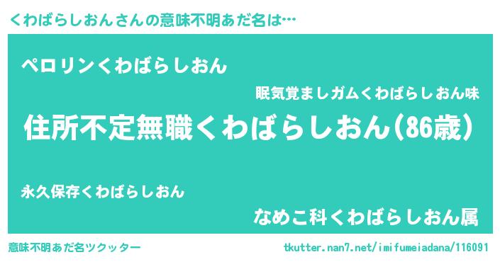| 胡散臭い通販商品みたいなあだ名 | 『世界中を虜にした世界で10本だけ現存している希少なブランデー…その名も「くわばらしおん」』 |